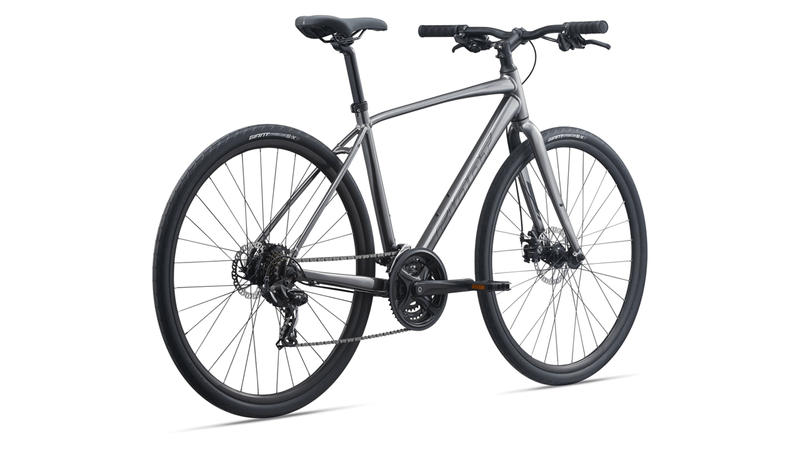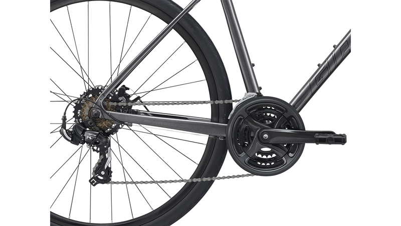Con su cuadro ligero de Aluxx, su posicionamiento erguido y componentes de alta calidad, la Escape es tu pase a la versatilidad y a la diversión. Ahora con una horquilla compuesta de alta calidad y el innovador poste de asiento D-Fuse, ambas para absorber sus vibraciones ofreciéndote una conducción aún más suave y confortable. Sus frenos de disco la dotan de una potente frenada en condiciones de lluvia o humedad y sus ruedas de 700c con llantas Giant EasyRide Tubeless (en modelos seleccionados) te permitirán seguir desplazándote rápida y eficazmente, reduciendo los riesgos de ponchadura. Además, está dotada de un espacio adicional de rueda de hasta 45 mm para instalarle llantas más anchas y más adecuadas para las carreteras más irregulares. Viene con soportes integrados para que la puedas personalizar con portabultos o salpicaderas. Sea cual sea el camino que elijas, la Escape Disc está lista para todo. Factores clave de rendimiento: Equilibrio y eficiencia. Cuadro ligero de Aluxx, cómodas ruedas de 700c y una posición erguida y segura ofrecen una calidad de conducción eficiente y equilibrada. Versátil. Los potentes frenos de disco y una amplia gama de marchas te ayudan a aumentar tu velocidad y afrontar las subidas con más control. Confiabilidad. Las llantas resistentes a las ponchaduras cuentan con el sistema Giant EasyRide Tubeless (en modelos seleccionados). Los soportes de rack integrados facilitan el transporte de tus productos esenciales diarios o la carga para las aventuras del fin de semana.